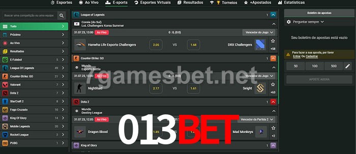 O 013bet oferece uma grande seleção de opções de apostas em e-sports com probabilidades competitivas